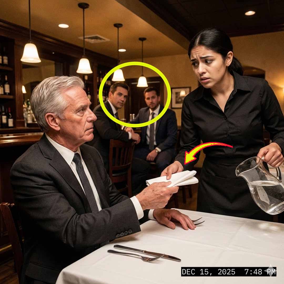 He didn’t flinch. He didn’t look at the napkin immediately. He waited until she stepped back, pulling a pen from her apron to check something on her pad—a ruse, he realized.