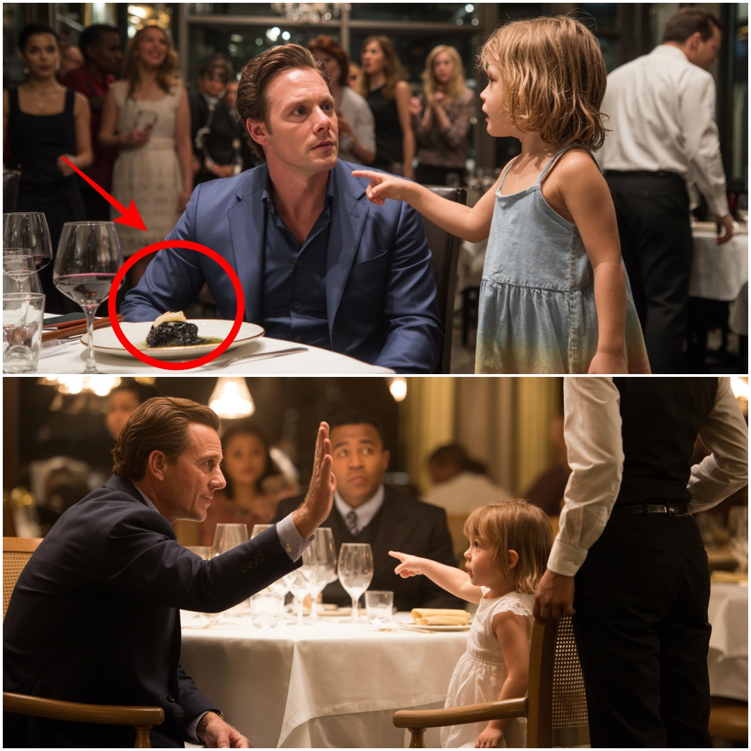 She stopped at the pristine edge of his table, inhaling a sharp, shaky breath. The noise of the room faded to a distant echo. The tension was suffocating, centered entirely on the billionaire and the ragged little girl.