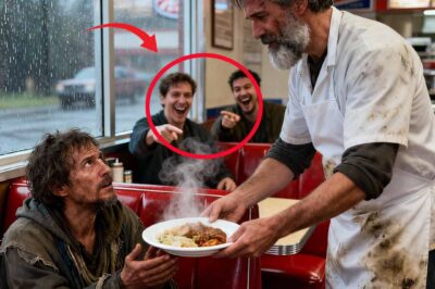 They laughed at me and called me a fool for feeding a homeless man while my own business was drowning in debt. They told me I was wasting food on a “nobody” while the bank was threatening to take the roof over my head. But on the day the Sheriff arrived to lock my doors forever, that same shivering stranger rolled up in a convoy of black SUVs and silenced the entire town with a single piece of paper that changed everything.