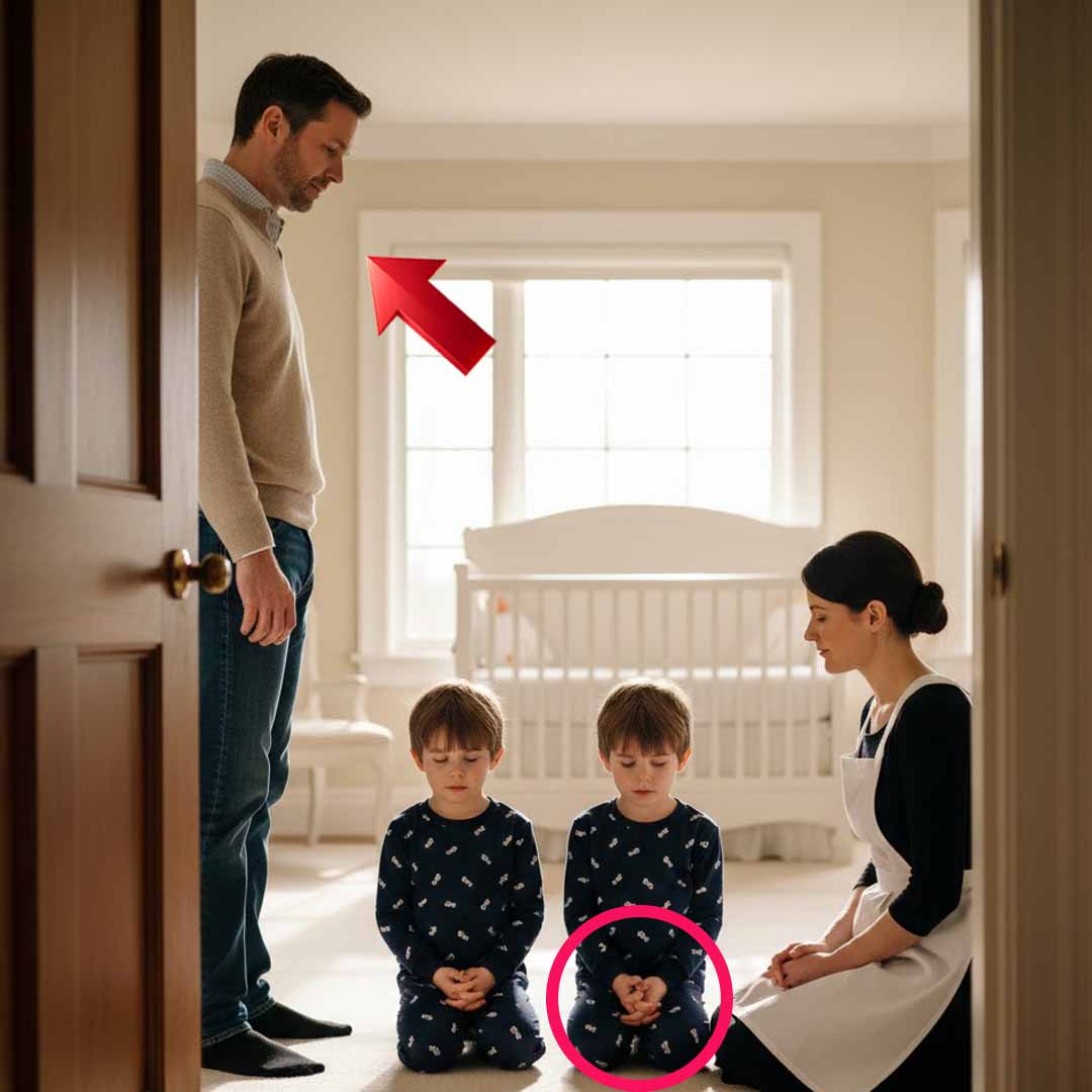 The twins, Evan and Leo, froze. They took instinctive, synchronizing half-steps back, moving to huddle behind Clara’s simple black skirt. The defensive gesture was like a knife twist in Nathaniel’s gut. They retreat to the nanny, not their father.