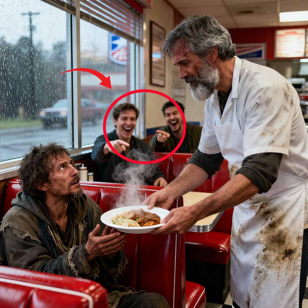 They laughed at me and called me a fool for feeding a homeless man while my own business was drowning in debt. They told me I was wasting food on a “nobody” while the bank was threatening to take the roof over my head. But on the day the Sheriff arrived to lock my doors forever, that same shivering stranger rolled up in a convoy of black SUVs and silenced the entire town with a single piece of paper that changed everything.