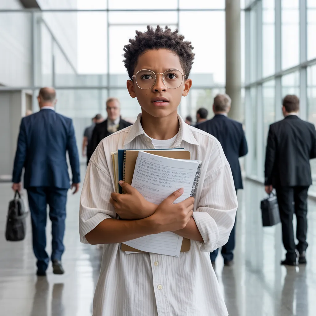 Elijah, all of ten years old, watched his painstakingly prepared papers scatter across the gleaming stage.