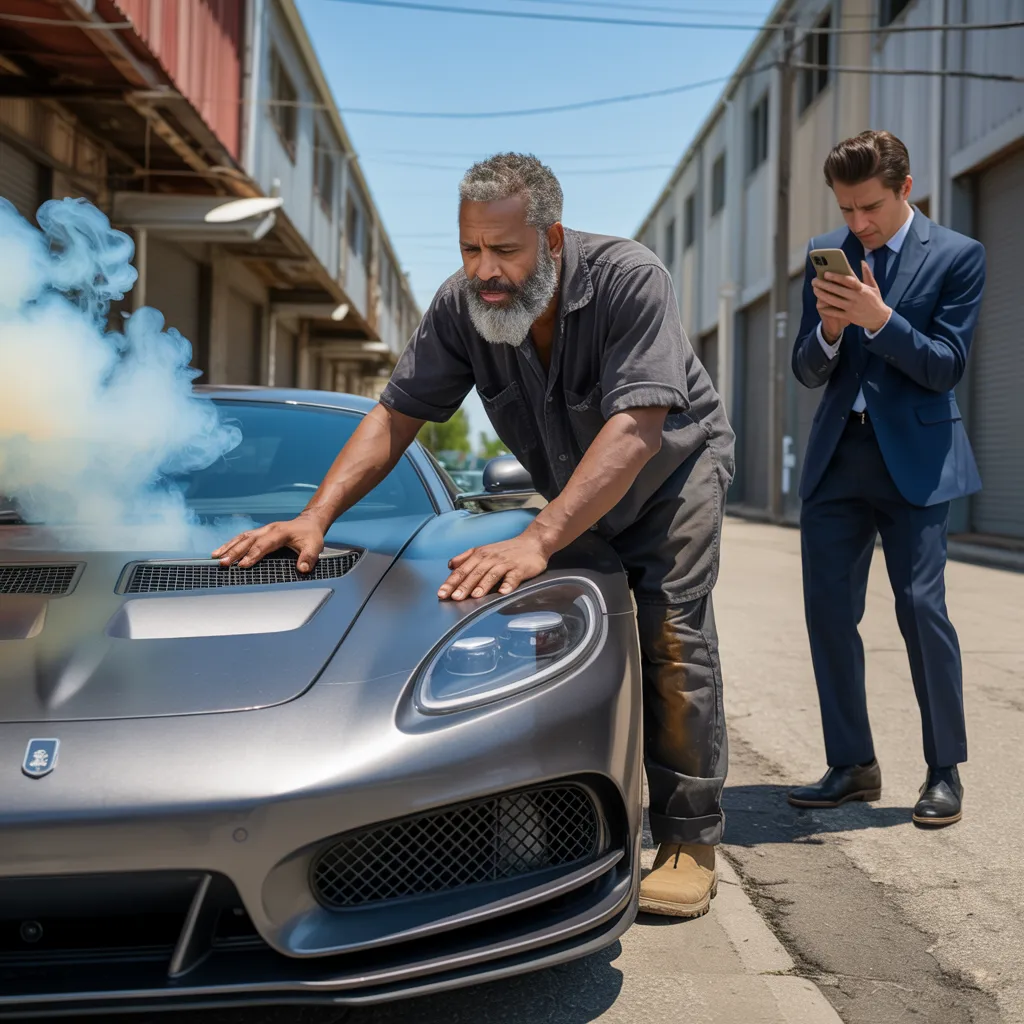 Smoke billowed from the engine of the Quantum Apex, a hypercar so rare only seventeen existed worldwide. Tech titan Anthony Wright, founder of Nexus Innovations, frantically dialed his phone in the deserted industrial district. No one answered. His $4.2 million masterpiece was dying, three hours before a crucial investor presentation.