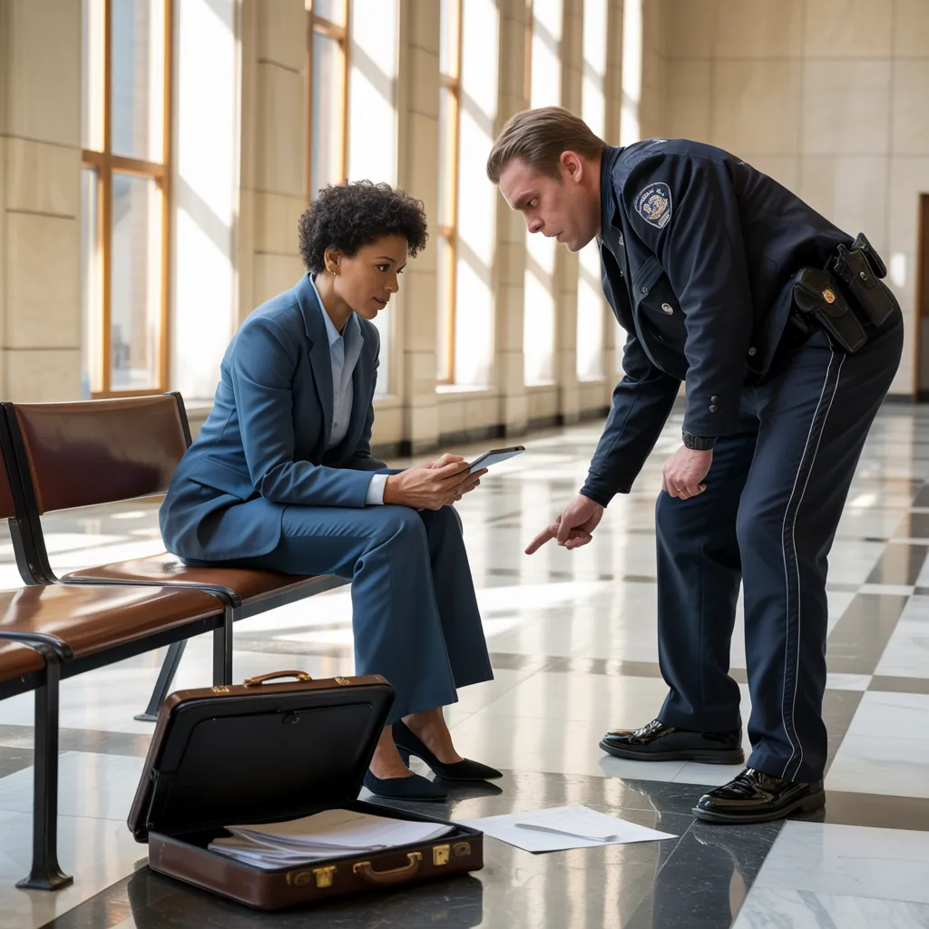 From the second floor railing, Jessica Carter, a paralegal, leaned over, pulling out her phone. Naomi gestured to her tablet and briefcase. “As you can see, I’m reviewing documents while I wait. Is there a problem?”