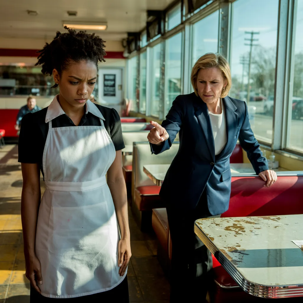 Patricia walked to the counter where Chenise was refilling a coffee pot. “Chenise, front now.” Chenise’s shoulders tensed. She set down the pot and hurried over, wiping her hands on her apron. “Yes, ma’am.” Patricia’s voice was low, but the booth’s acoustics carried it perfectly. Harrison had built this place; he knew every sound pocket, every echo. “We need to talk. Office.” “Yes, ma’am. Let me just…” “Now, Chenise.”