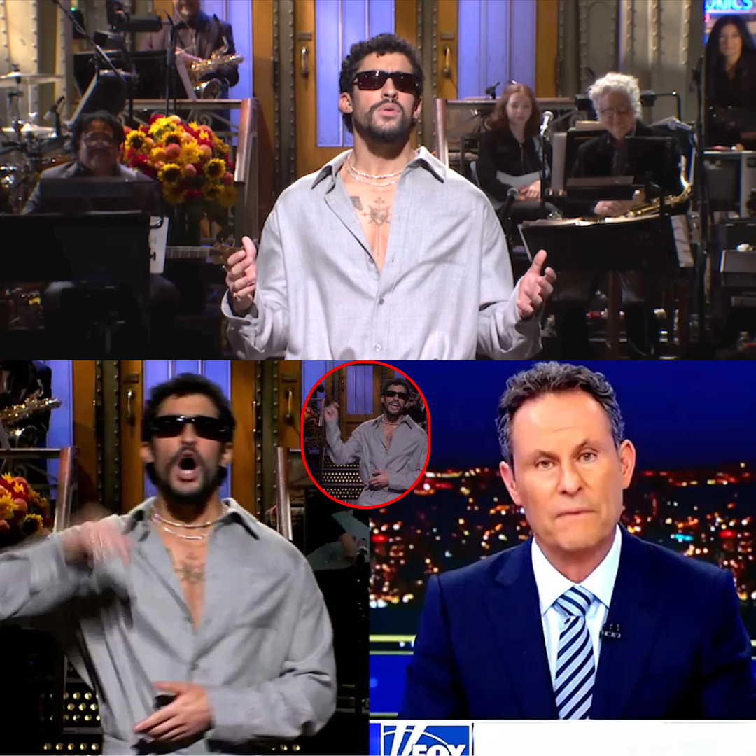 The screens behind him flashed a rapid-fire montage of right-wing anchors, their faces contorted in various stages of manufactured indignation, stitched together to form one gloriously absurd, edited-together sentence: “Bad Bunny is my favorite musician, and he should be the next president.”